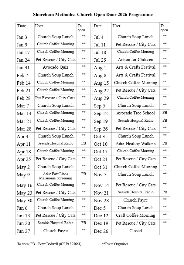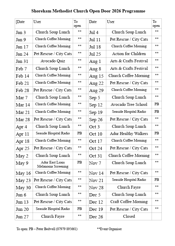 All are welcome to come along to see what is happening. A list of events is shown below.